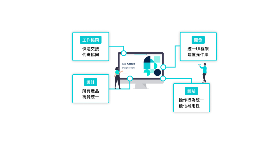 跨部門協作溝通 此產品由兩位設計師負責,但在建構設計規範以及套用元件的時候,需與公司其他多位設計師合作,也必須考量開發框架的需求。因此在協同作業與溝通上花費了很大的心力。